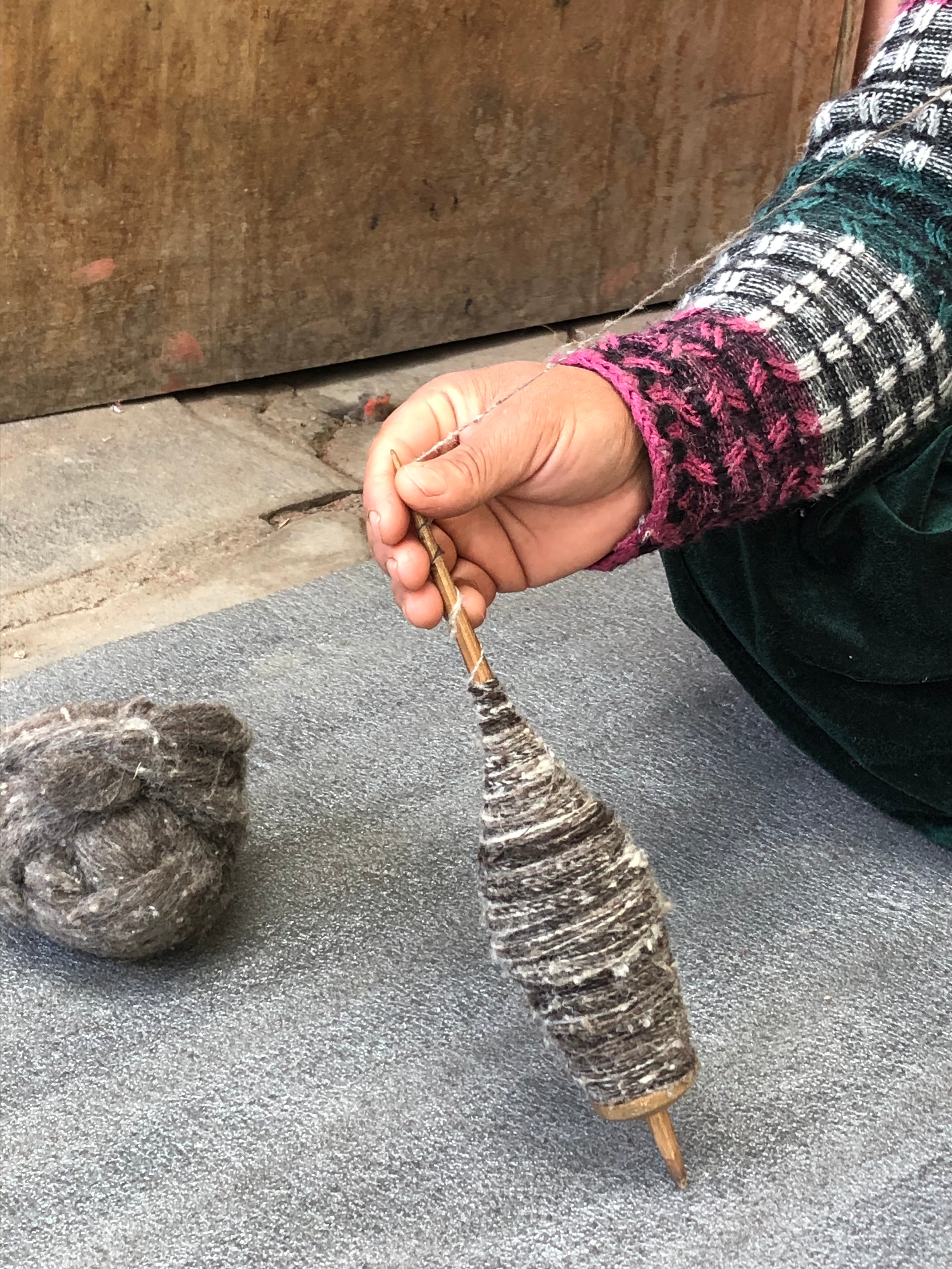 Artisans spin wool into yarn using traditional tools like Taklis and Charkhas