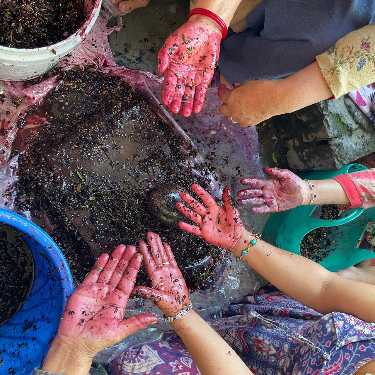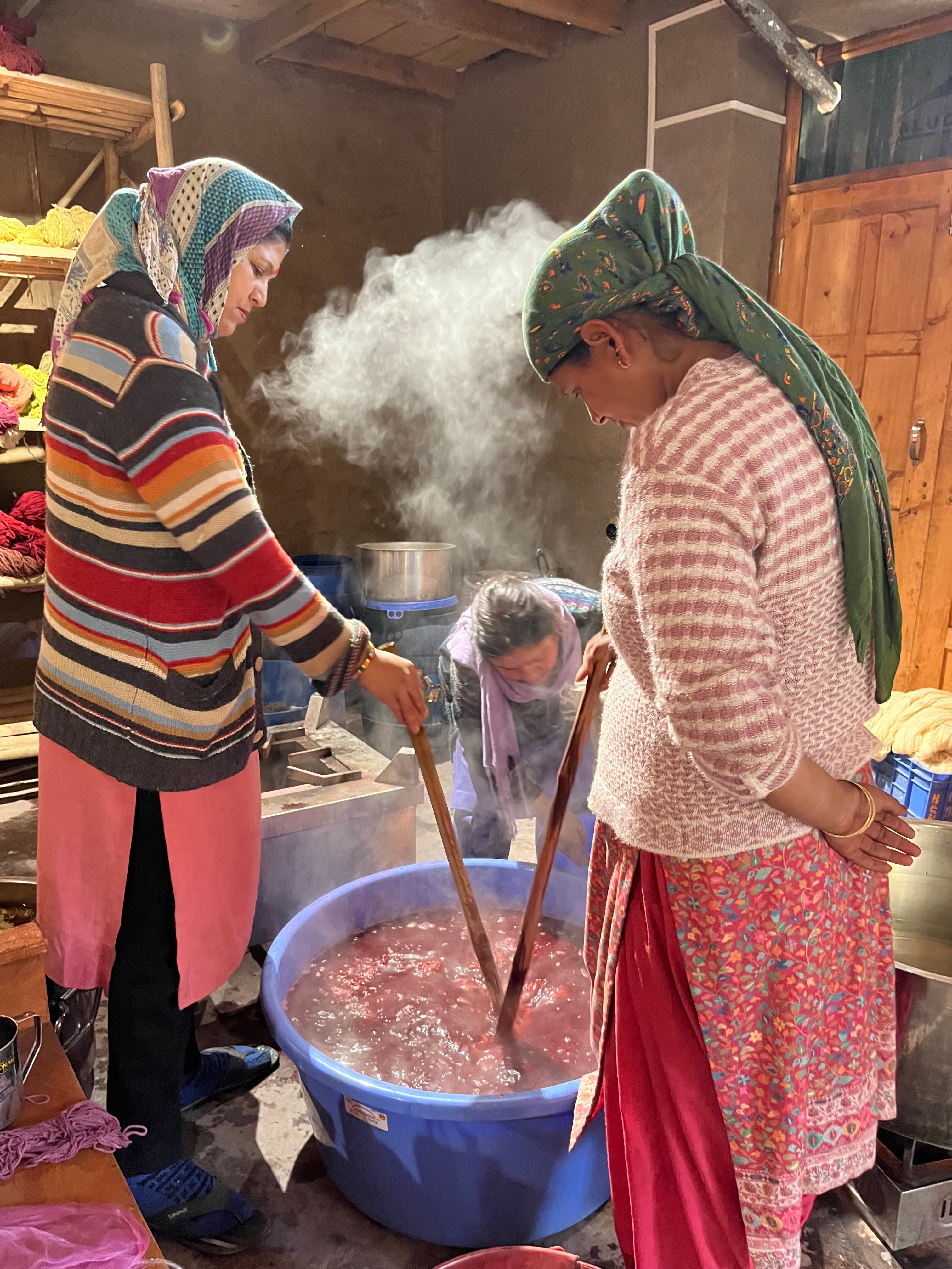 Dyeing yarns with naturally sourced pigments such as marigolds, walnut husks, and madder.