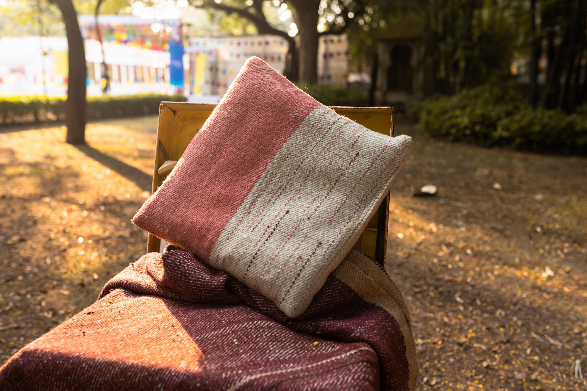 Our home collection is beautifully crafted with upcycled naturally-dyed woollen yarn from our production. We worked with our weavers to reinterpret traditional Kullvi motifs for a more contemporary context. The cushion covers are handmade from start to finish, therefore there may be minor variations from piece to piece.