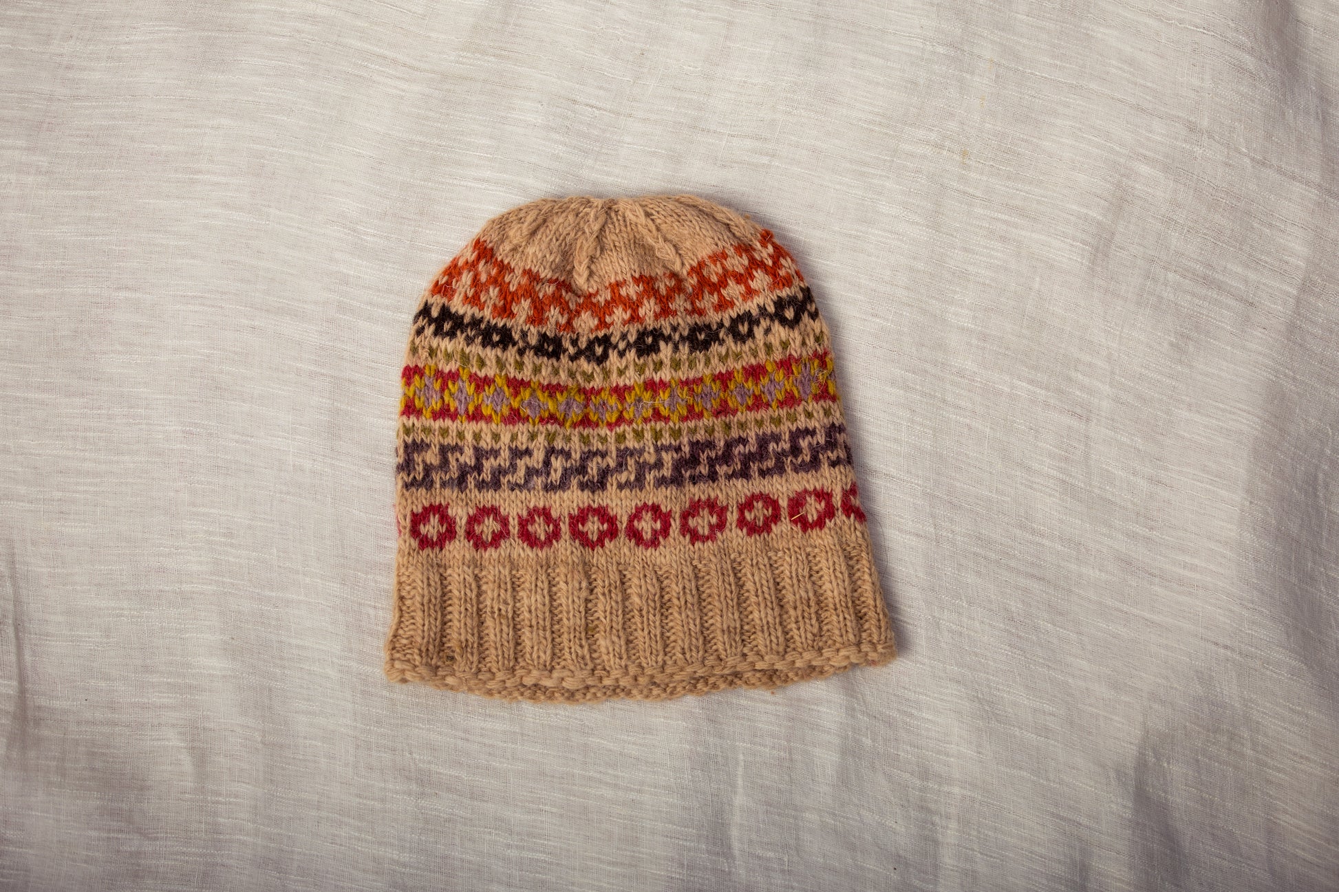 Handspun and handknit by our women artisans, each one is individual in design and colour. Orders will be based on colourway, and patterns may vary from the one shown in picture.