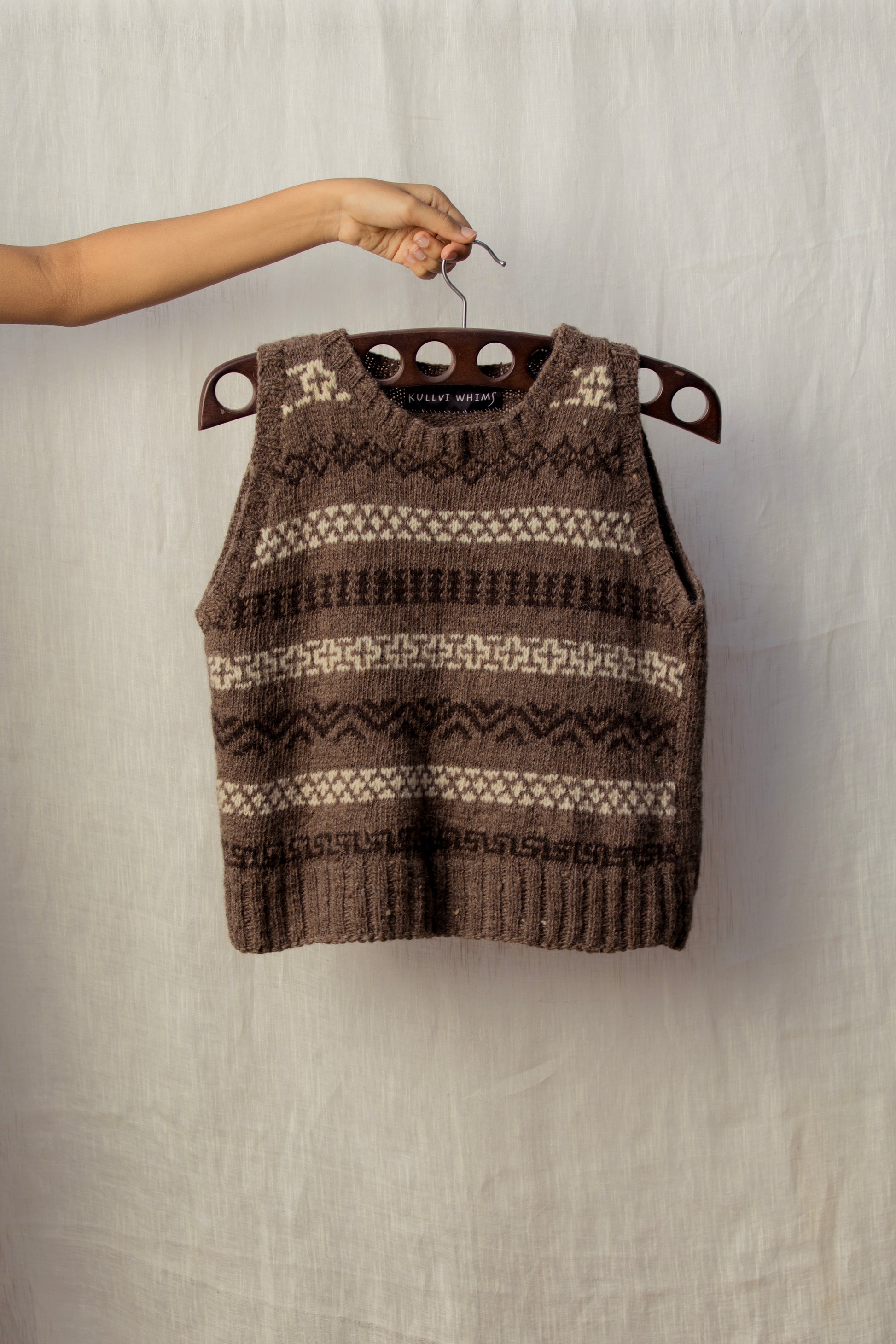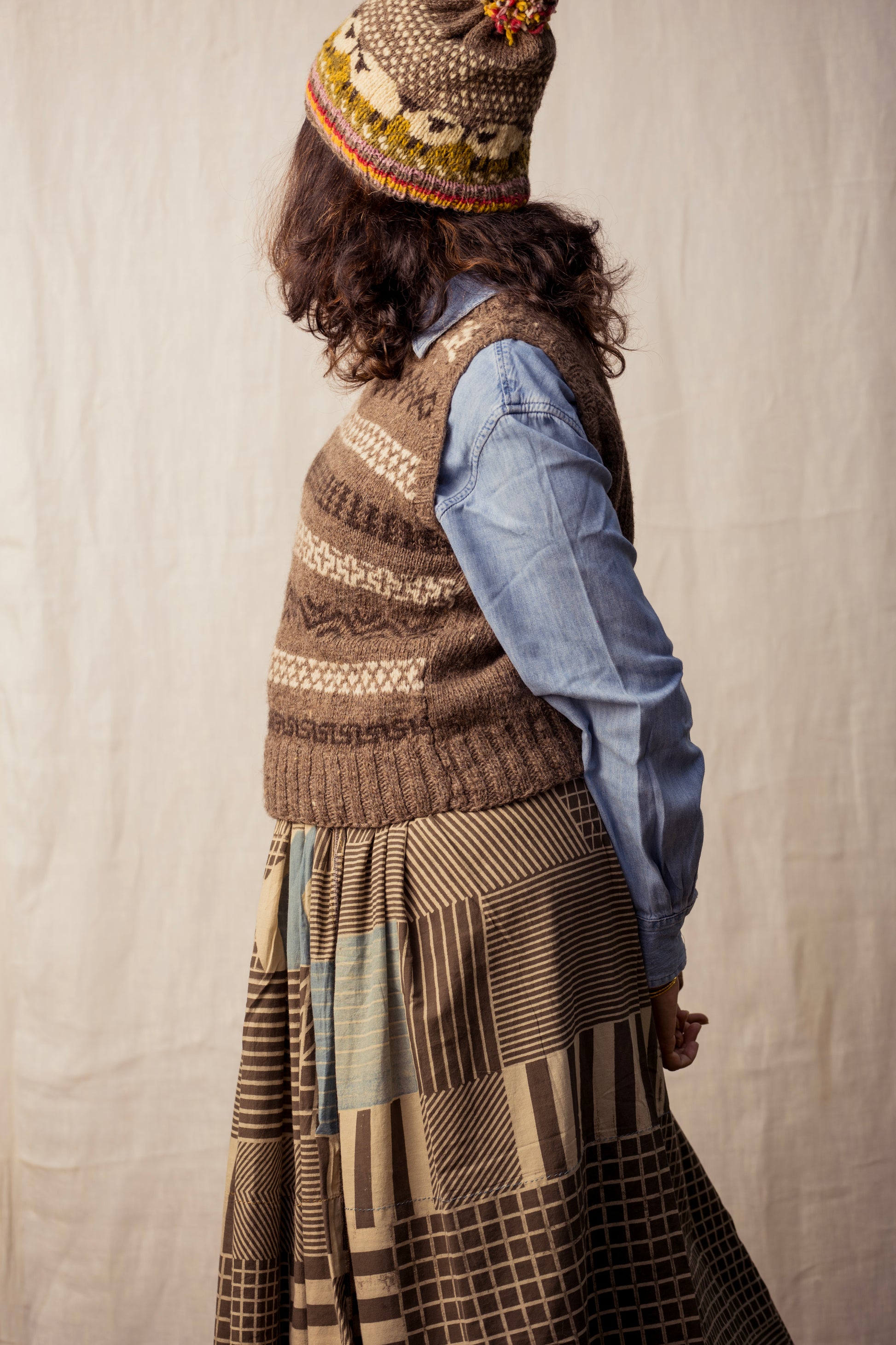Inspired by the motifs of Lahaul, these handknitted vests have been crafted from handspun, naturally-dyed indigenous Himalayan wool.