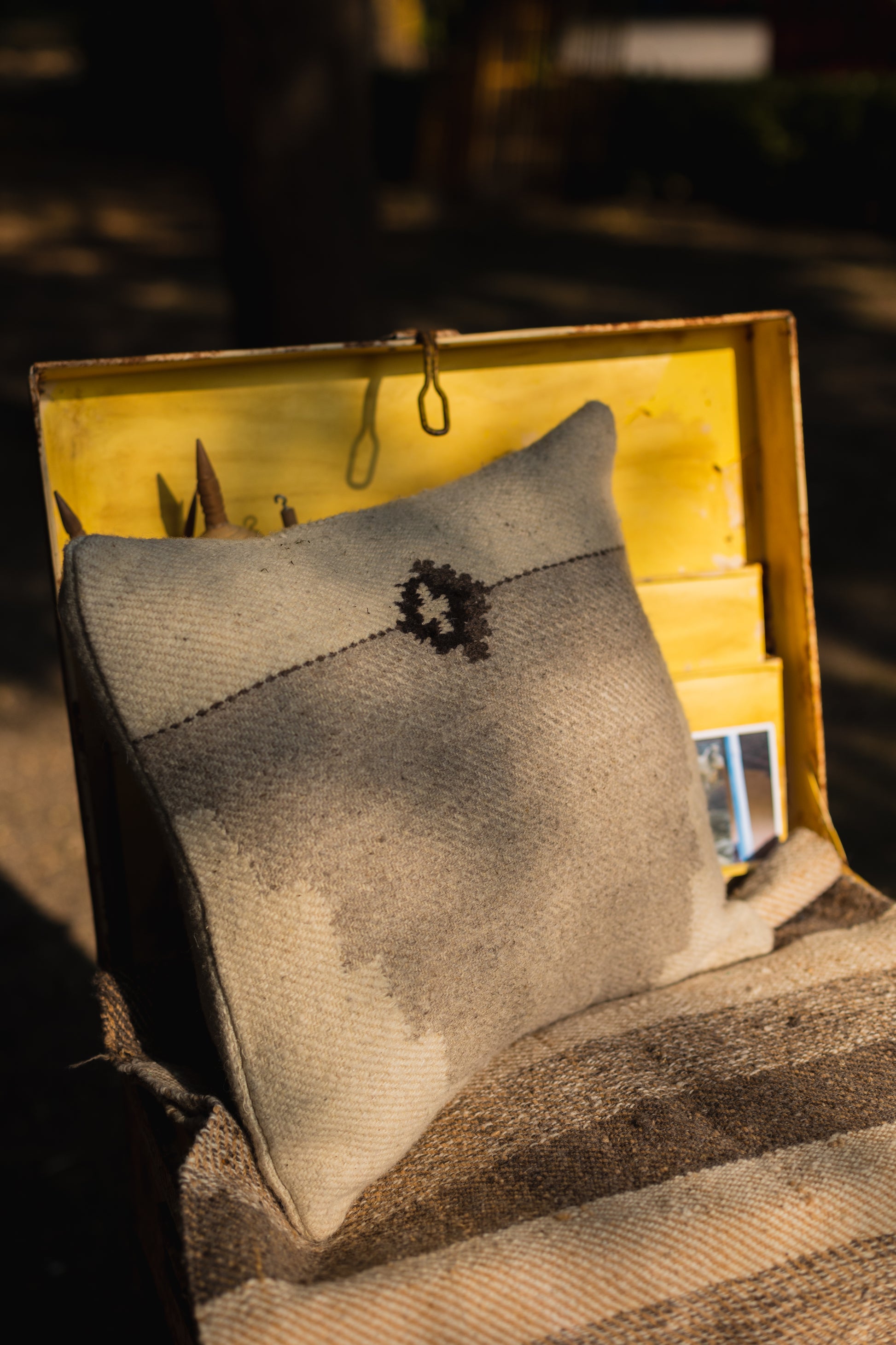 Our home collection is beautifully crafted with upcycled naturally-dyed woollen yarn from our production. We worked with our weavers to reinterpret traditional Kullvi motifs for a more contemporary context. The cushion covers are handmade from start to finish, therefore there may be minor variations from piece to piece.