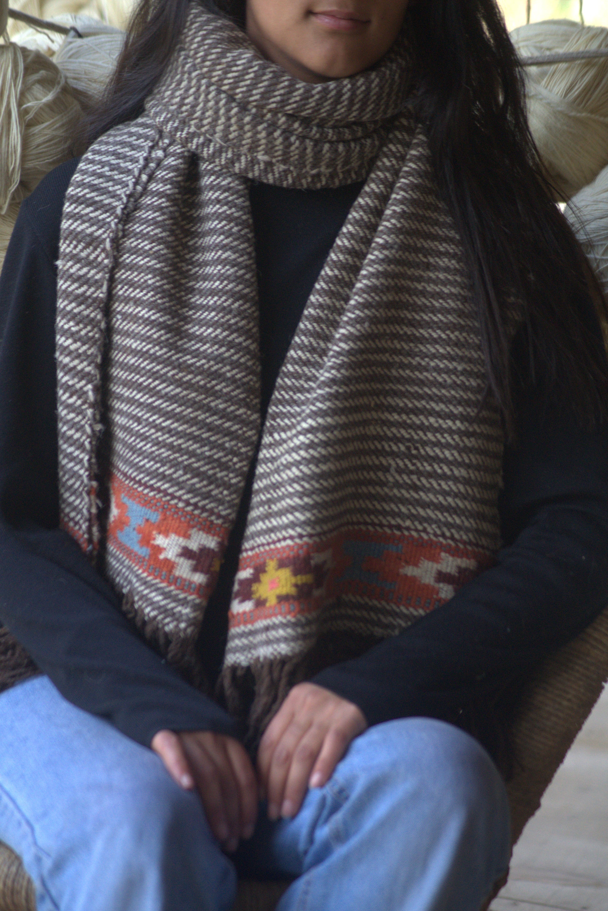 Our heritage stoles take inspiration from traditional Kullvi motifs which have symbolic significance, such as a water source surrounded by land or a chain of mountains, and a coin representing fulfilment of a wish.