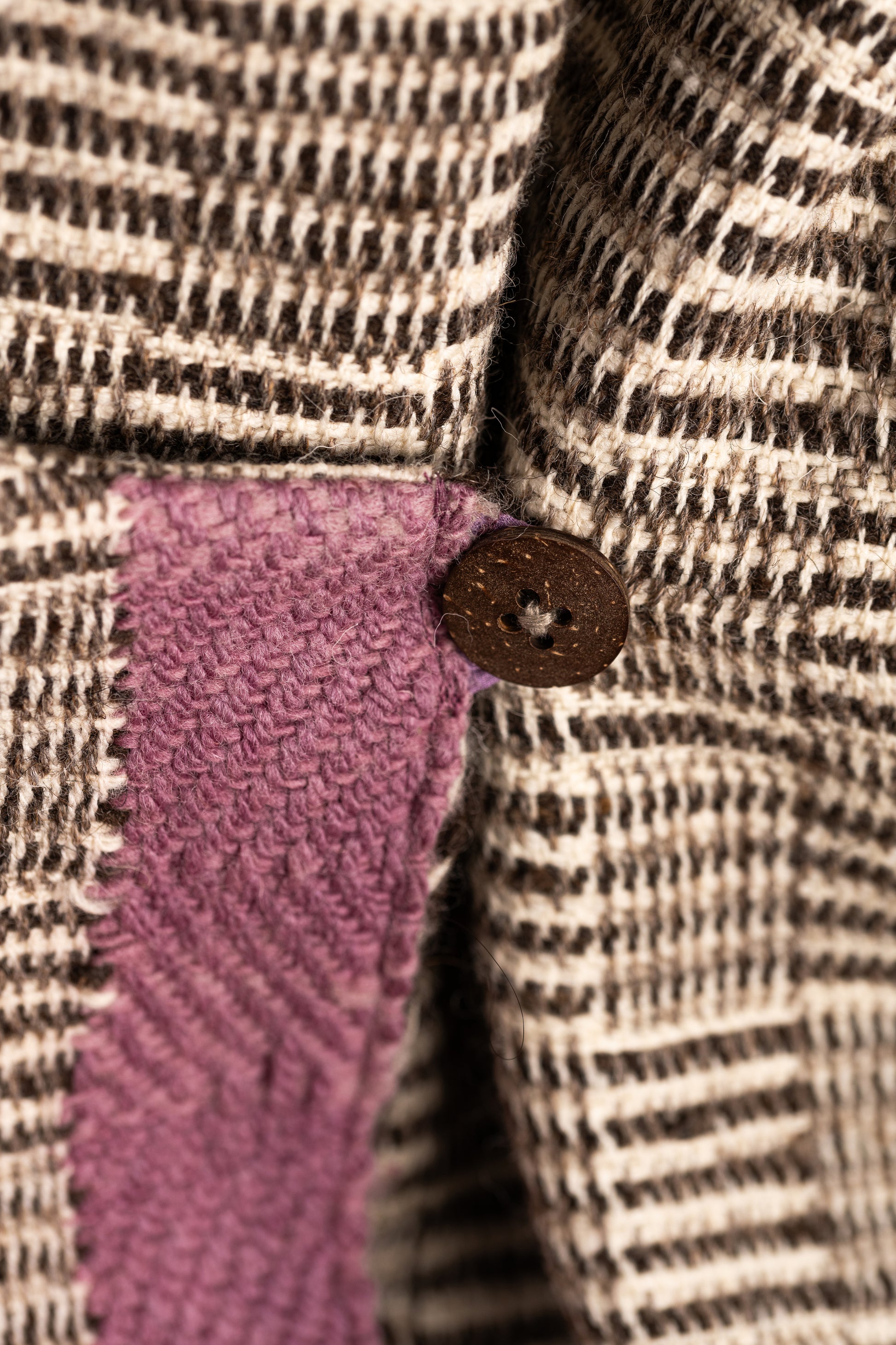Wooden button closure and hand-finished details