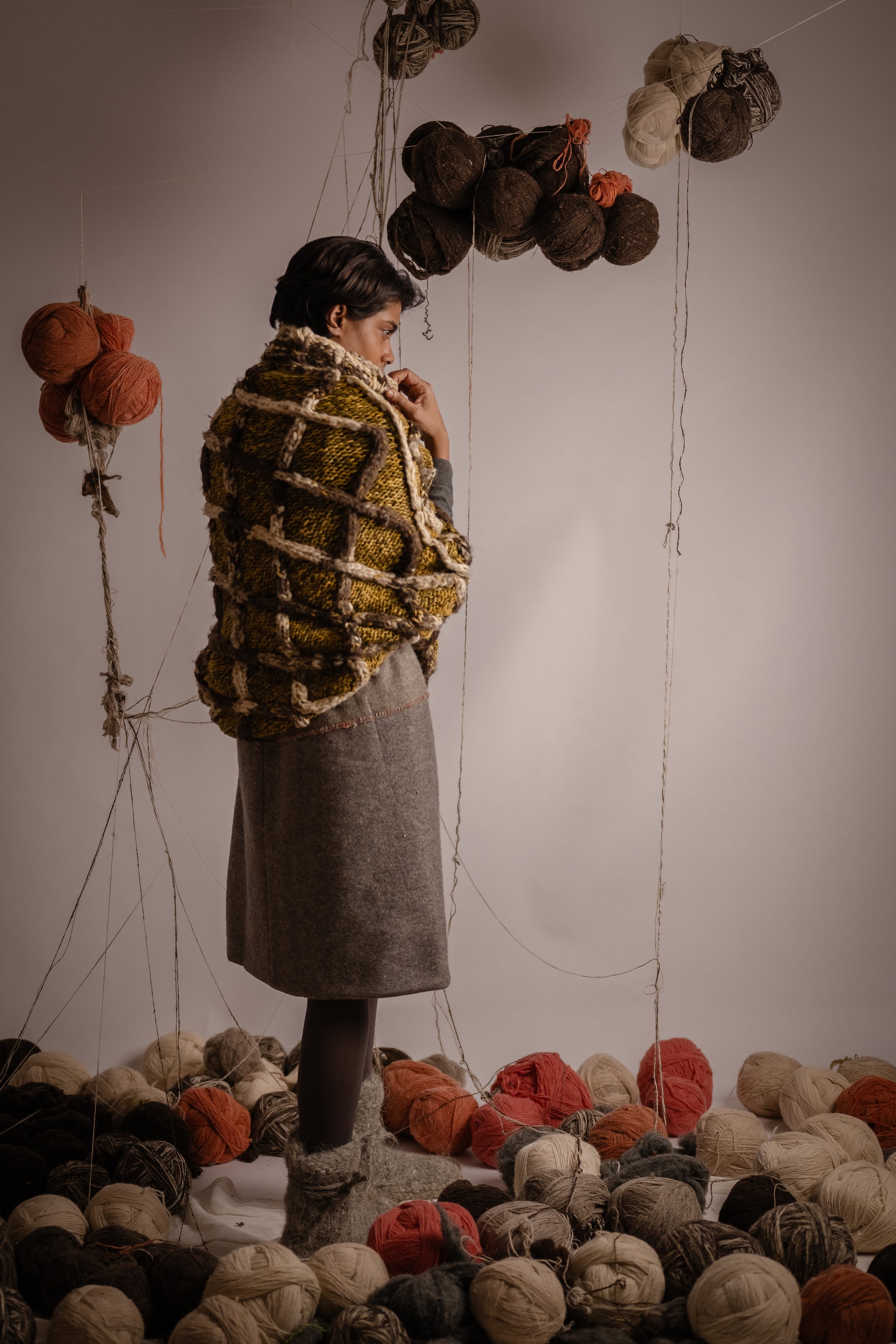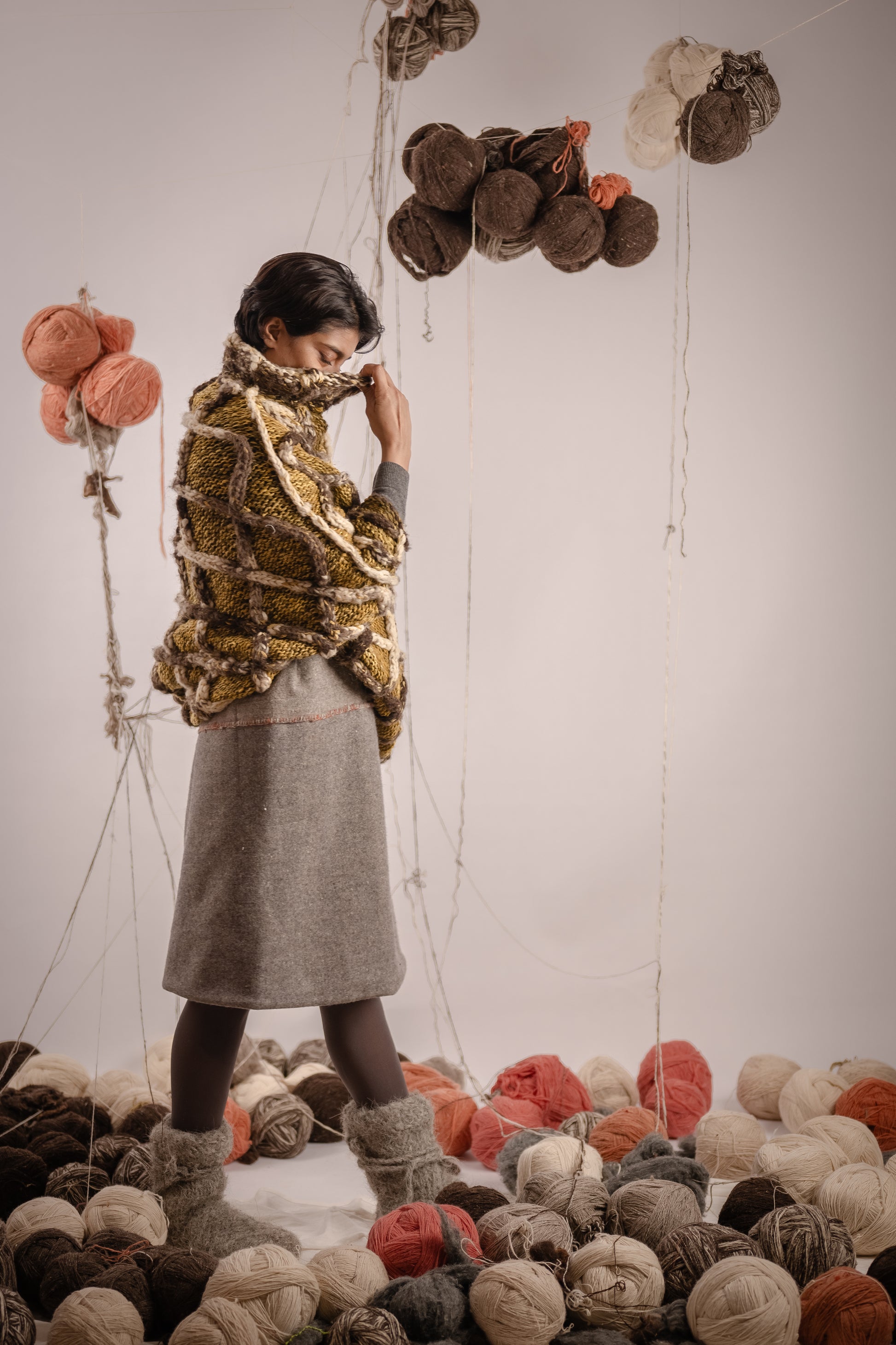 Wrap yourself in the rustic elegance of the Snow-Capped Poncho, a masterpiece woven with care and creativity. Crafted meticulously from hand-carded Himalayan wool, it showcases a sophisticated interplay of chunky cable textures and earthy hues reminiscent of snow-capped peaks set against verdant mountain pastures. This artisanal poncho embodies a unique fusion of tradition and contemporary fashion, making it a versatile statement piece for cozy evenings or an expressive daytime look.