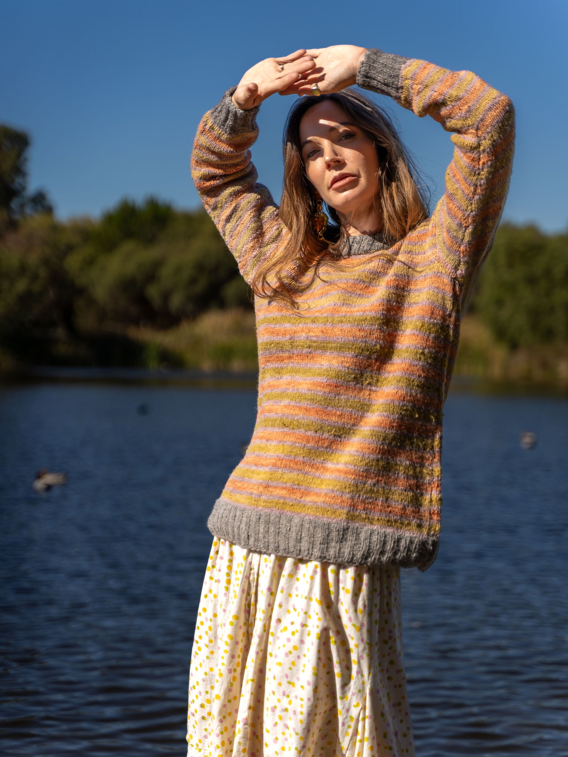 Embrace the season with our cozy, striped sweater, blending a palette of warm autumn hues. Designed for both style and comfort, this piece features a classic crew neck and ribbed detailing on the cuffs and hem. Perfect for any setting, it pairs effortlessly with your favorite skirts or jeans, ensuring you stay chic and comfortable wherever you go.