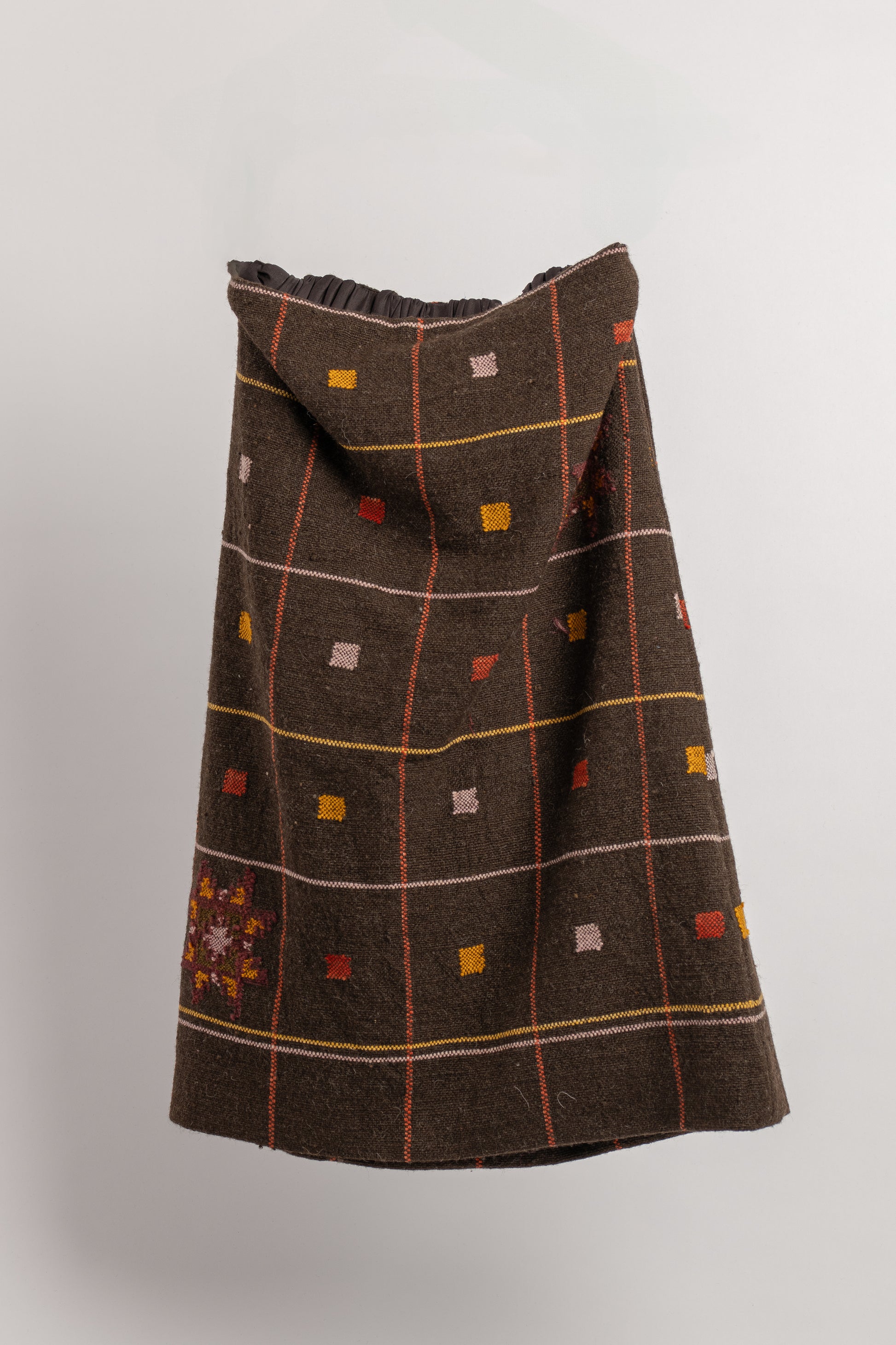 To preserve the softness and structure of your Tara Skirt, gently hand wash in cold water using a neutral soap. Avoid scrubbing or wringing the fabric to maintain the integrity of the weave and natural dyes.