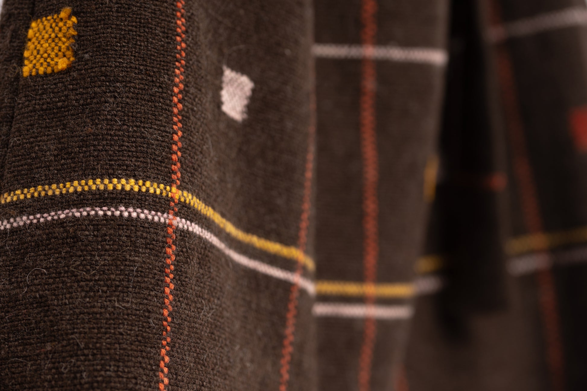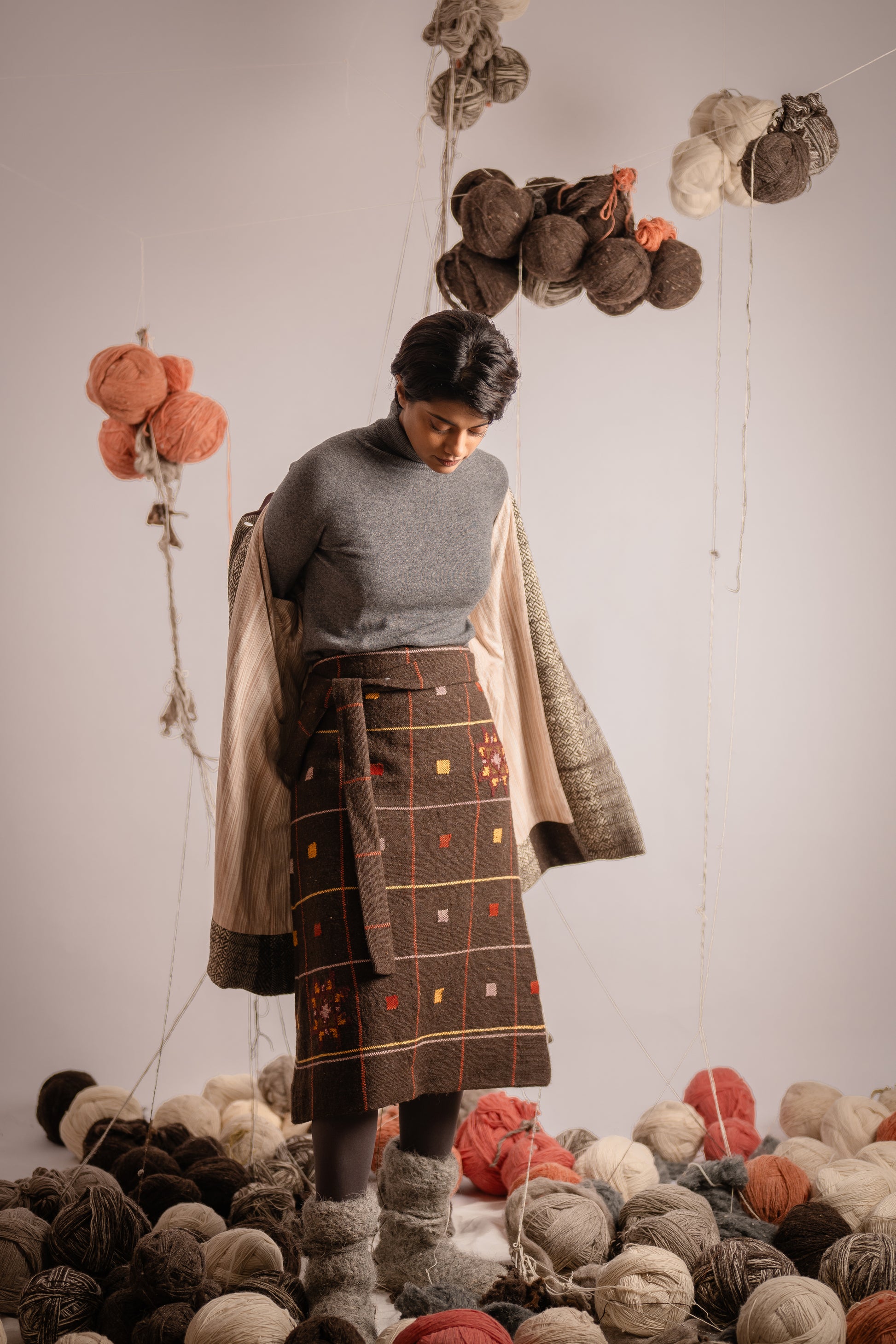 This A-line skirt blends comfort, versatility, and heritage beautifully. Featuring an elasticated waist at the back and a sash, it fits a range of sizes effortlessly. The design showcases a vibrant check complemented by carefully placed Tara motifs to create an off-the-loom piece with minimum wastage during sewing.